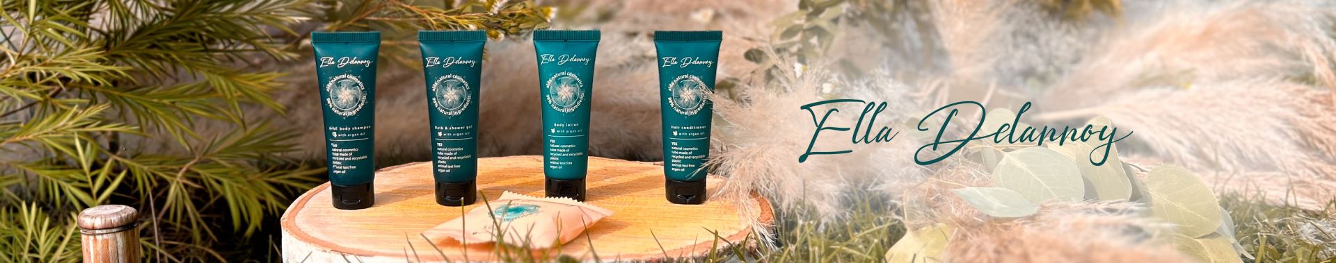 Seria Ella Delannoy to wyjątkowa linia kosmetyków łącząca luksus z dbałością o zdrowie i przyrodę. Każdy produkt tej serii jest tworzony z naciskiem na maksymalne zachowanie naturalnych składników. Podstawą jest bogaty w wartości odżywcze olejek arganowy. Linię Ella Delannoy wyróżnia świeży owocowy zapach bergamotki, pomelo, ananasa i brzoskwini.