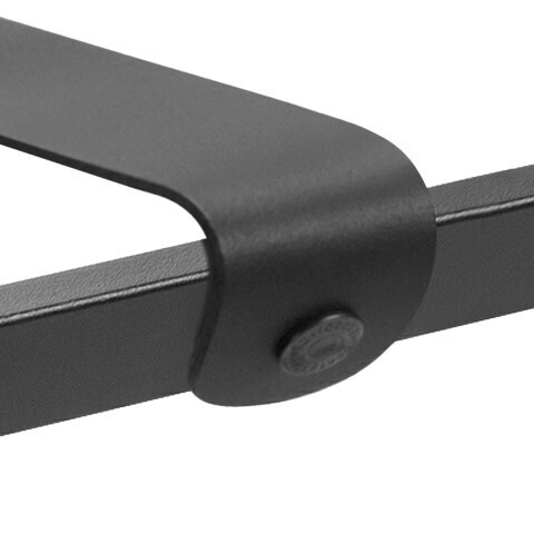 Stojak na bagaż ze stali w kolorze czarnym z nylonowymi pasami.